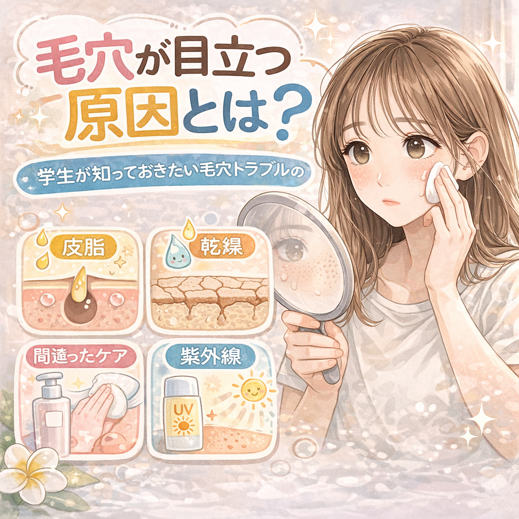 「鏡を見るたびに毛穴が気になる…」そんな悩みを持つ学生はたくさんいます。でも、毛穴が目立つ原因を正しく知らないまま、間違